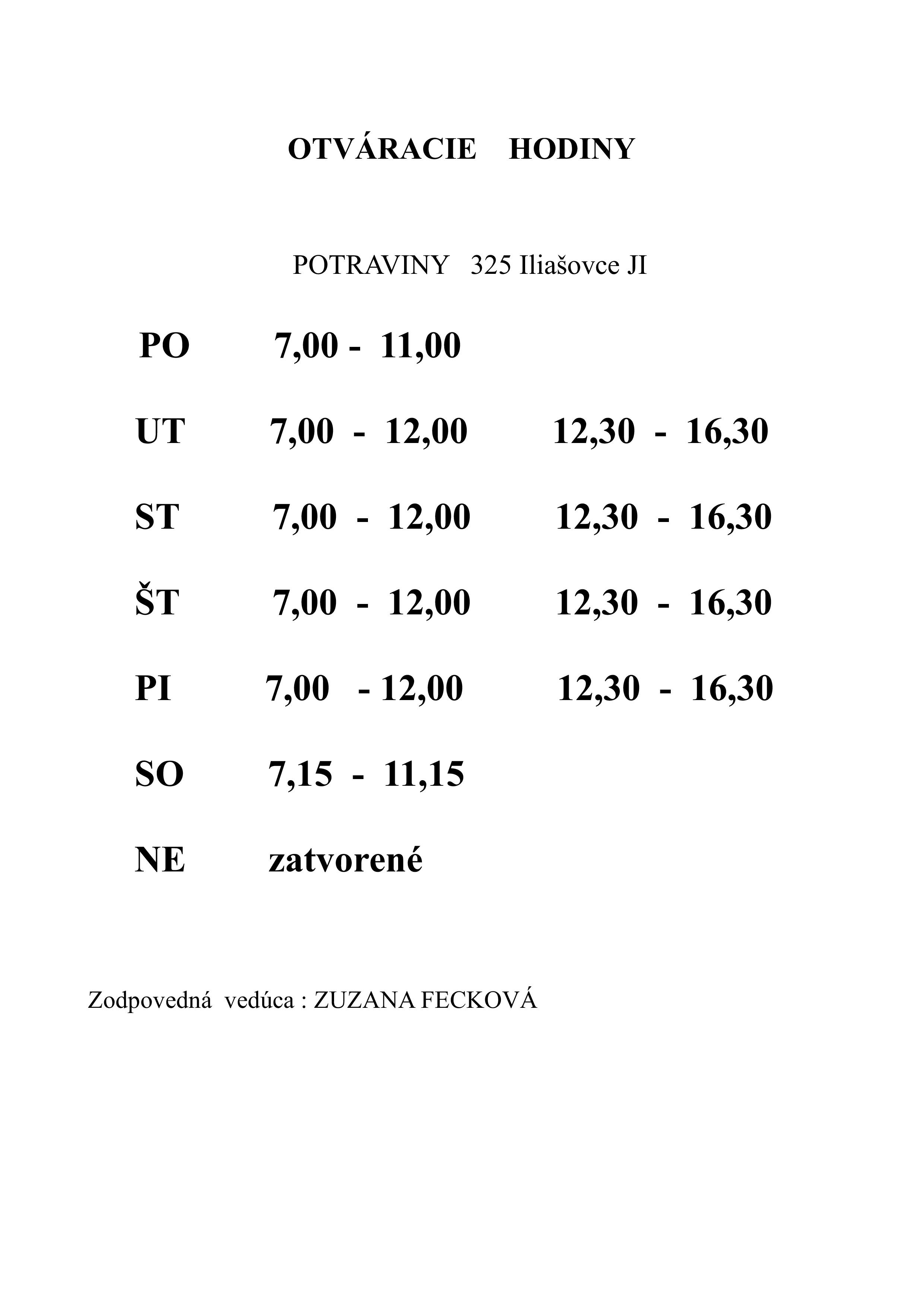 Oznamujeme Vám, že na našej predajni JI 325 Iliašovce , Iliašovce 218, 053 11, bude zmena otváracích hodín od 01.04.2026 .